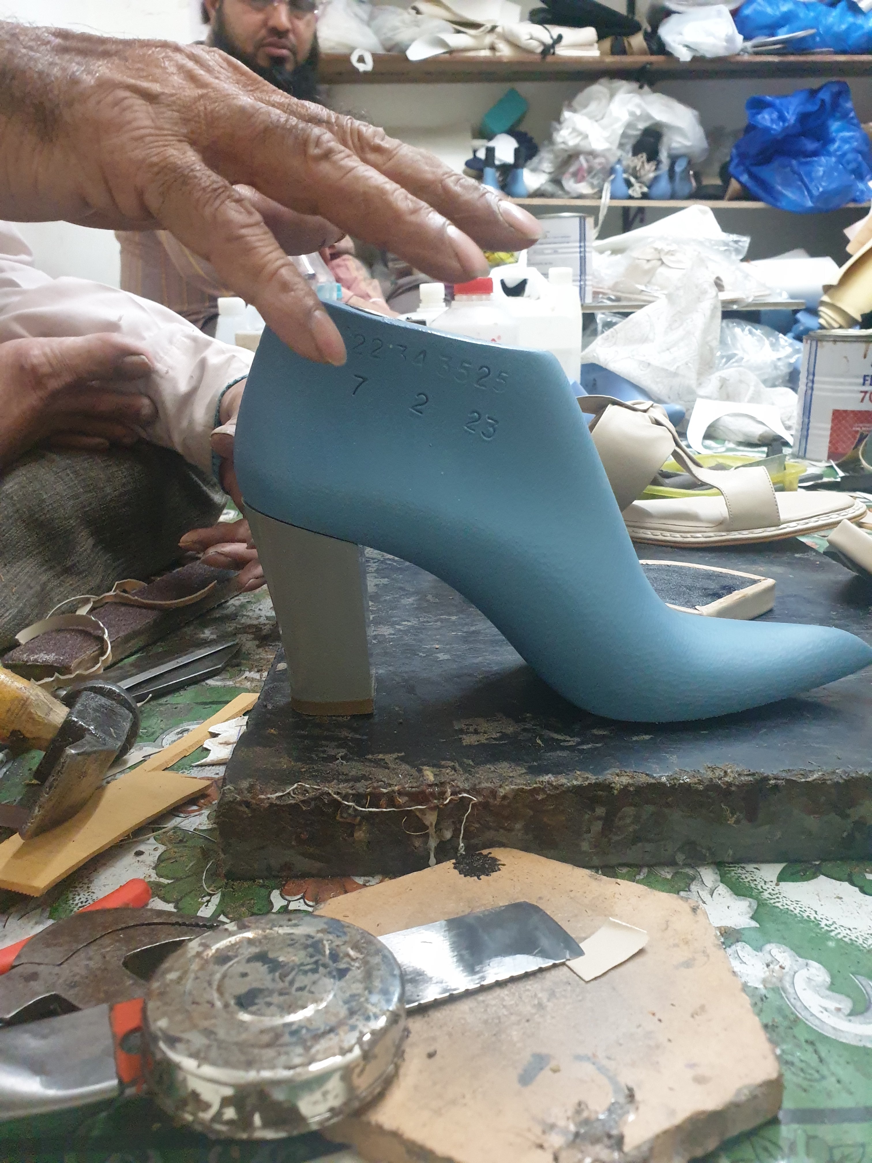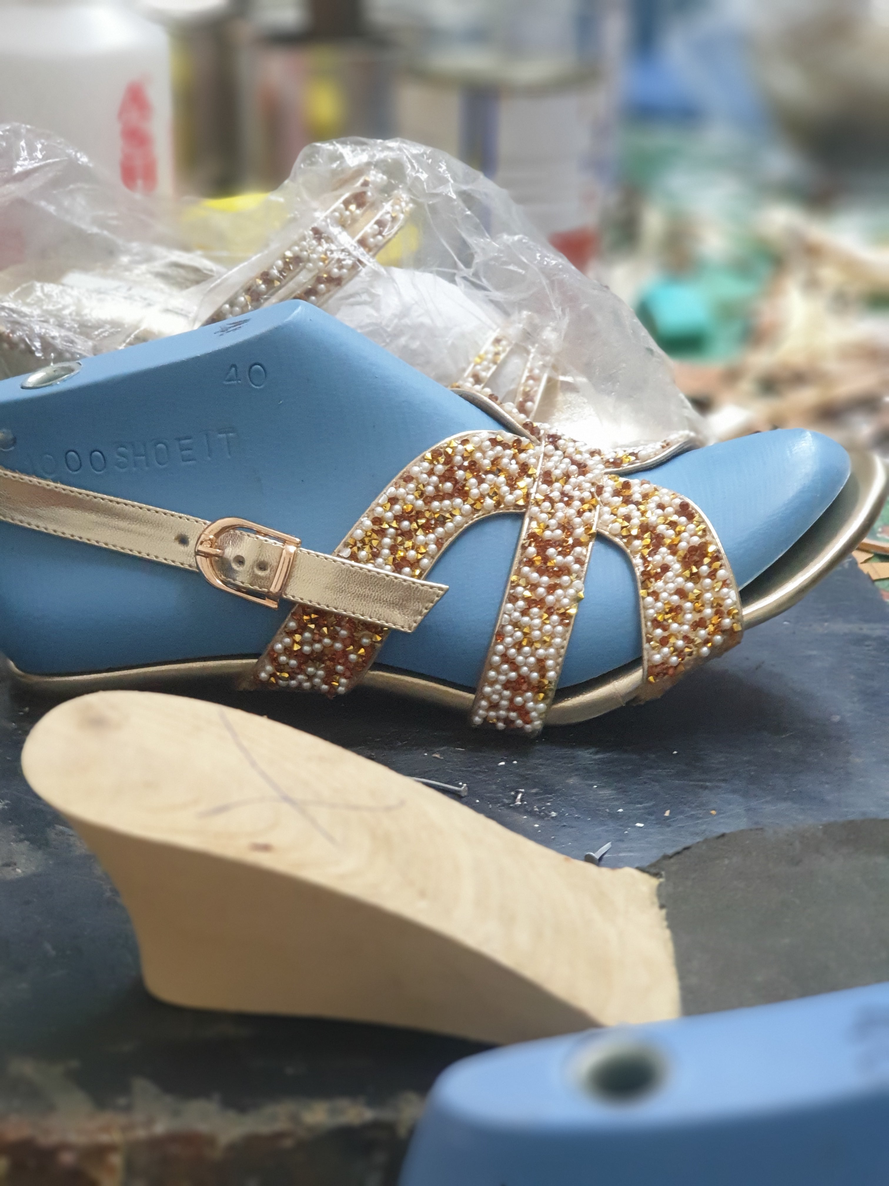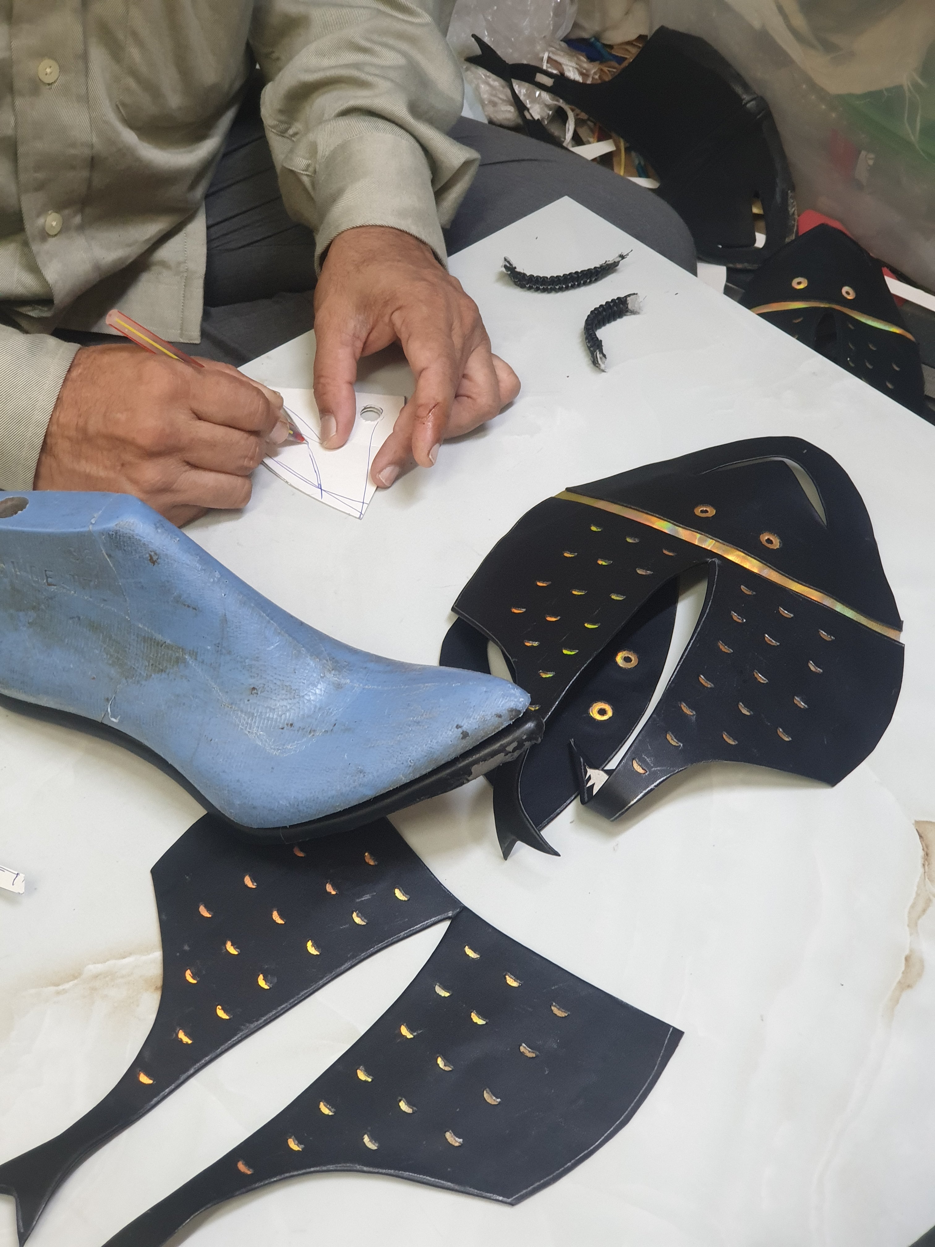 Once the pattern has been made and pieces have been stamped they’re marked to indicate the details of the shoe. Suppose, if the shoe design has certain cutouts or perforation, these will be shown through visible markings. While sewing, firstly, the upper half of the shoe is stitched together, followed by the lining.