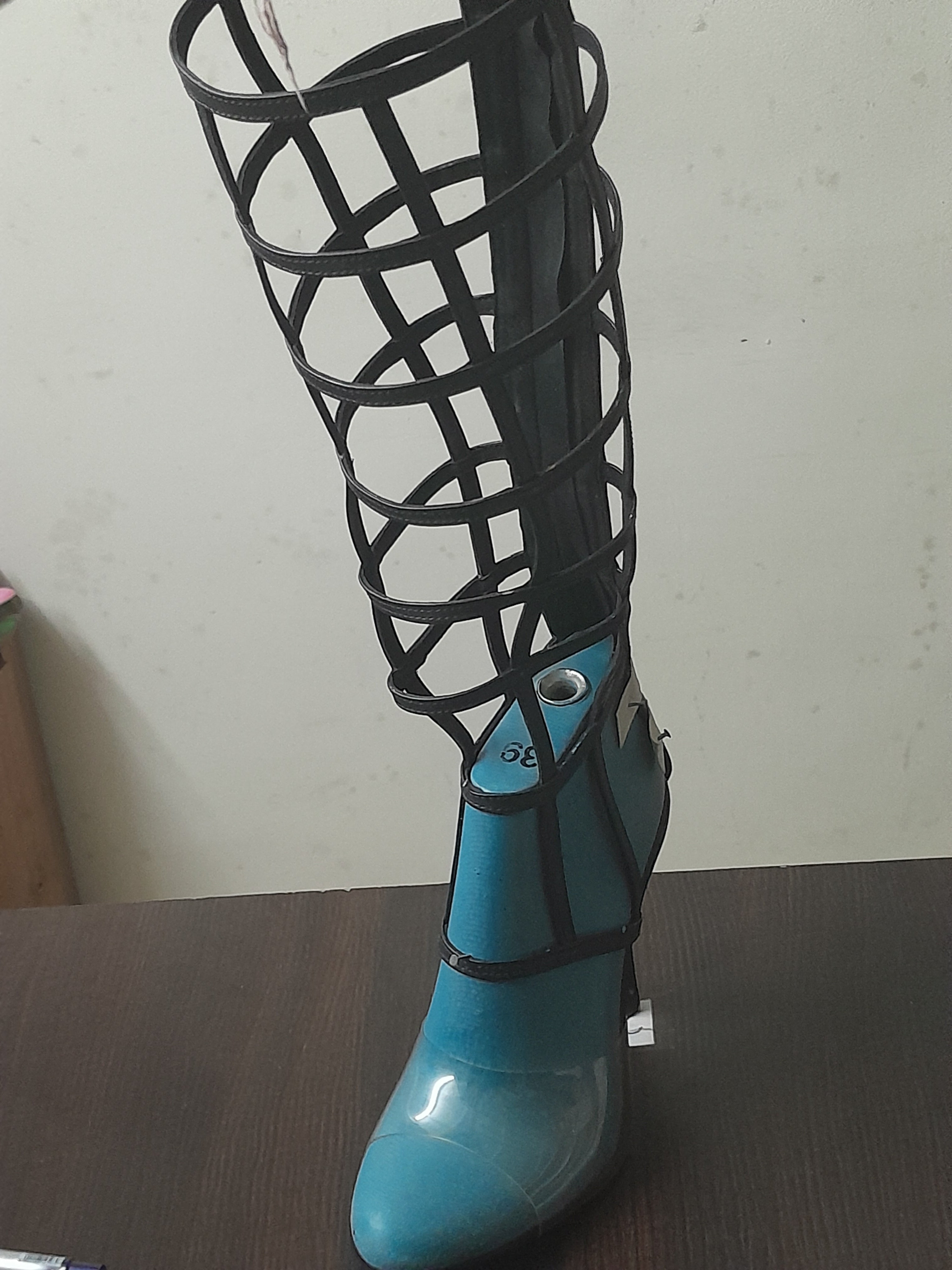 Next, the welt is stitched to the upper and the lining and a shank is placed between insole and outsole. A shank, is made out of plastic or fibreglass which provides support to the foot and gives the shoe a structure.