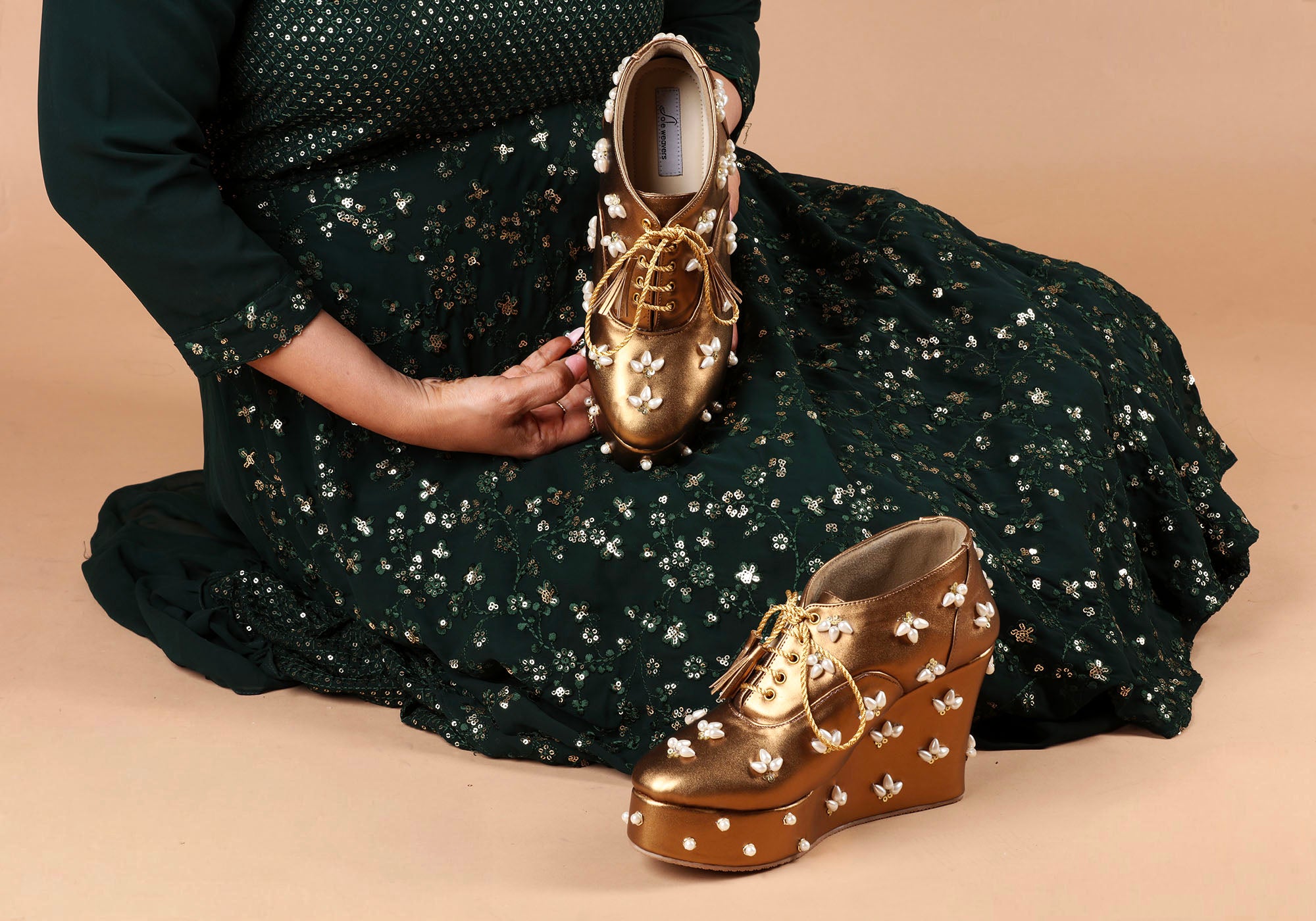 Elevate your wedding day with Sole Weavers’ Bridal Collections, where every detail is tailored to perfection. From sizes UK 33 to 45, our customized footwear and accessories can be matched to your wedding dress or lehenga, ensuring a seamless blend of elegance and style on your special day. Walk down the aisle confidently, knowing you’ve chosen the perfect pieces to make your bridal ensemble unforgettable.